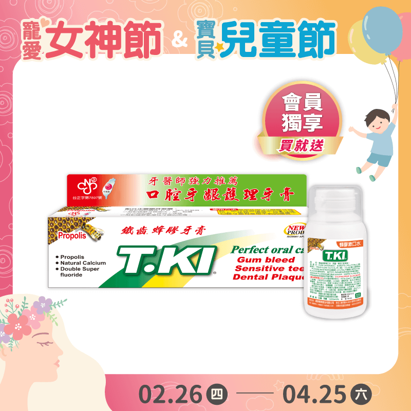 【T.KI】蜂膠牙膏144g 【買就送】T.KI蜂膠漱口水120mlX1瓶