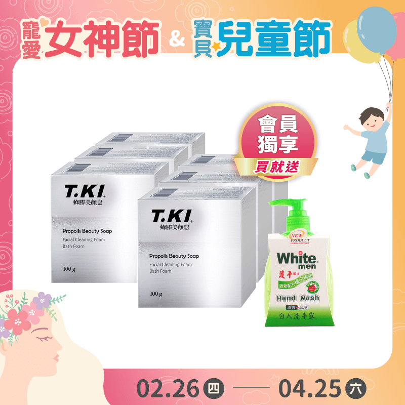 【T.KI】蜂膠美顏皂100g(銀)X6入組【買就送】白人洗手露300mlX1瓶